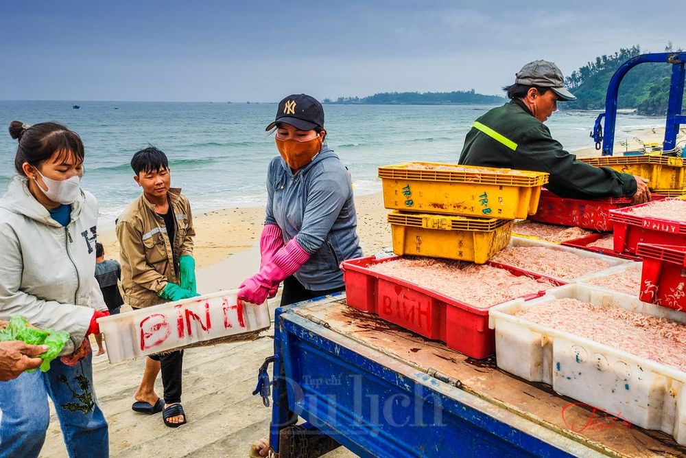 Lưới được mẻ nào là chở ngay vào bờ, người dân và du khách có thể ra tận bãi mua về chế biến.