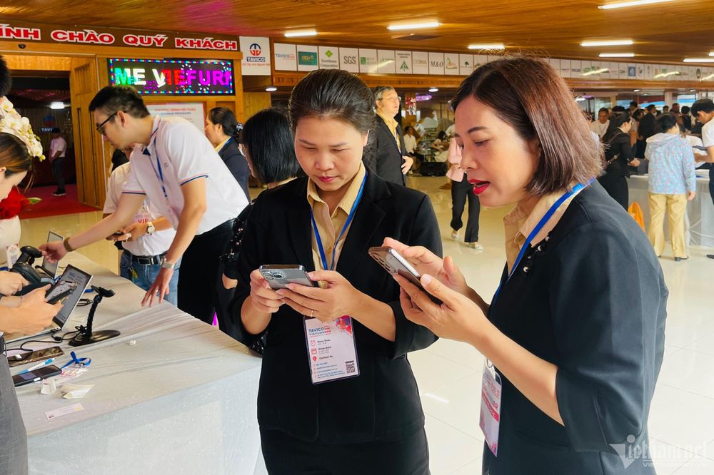 Người dân check-in bằng mã QR trước khi vào sự kiện chợ đồ gỗ.